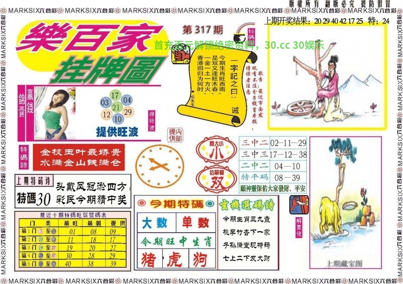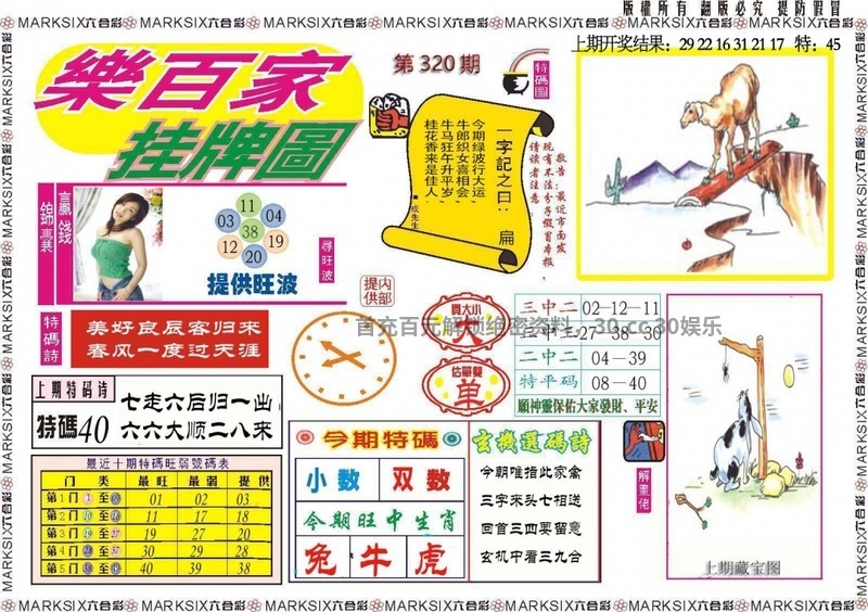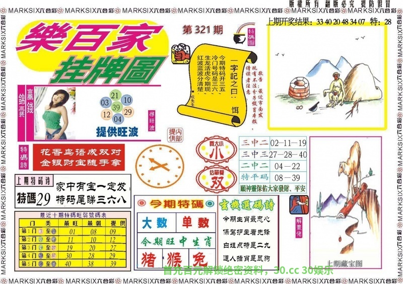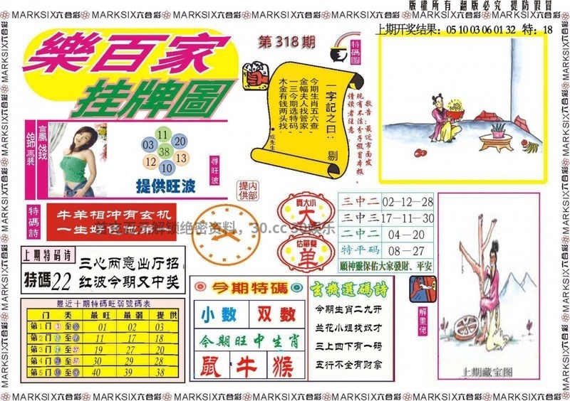 | 322期:六合三怪/内部平特诀/独家六合玄机/六合对诀/波色输尽光 |